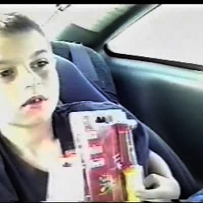 Three young boys in a car hold socks up to a young girl and ask her to smell them. She screams out her guesses whose sock is whose.