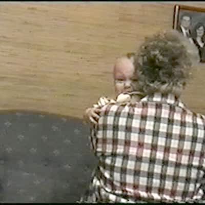 A young girl and her tot brother sing happy birthday to the camera for their aunt, then he pulls his sister's hair and she screams.
