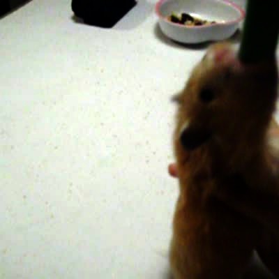 Boy puts a real hamster on top of a Zhu Zhu Pets hamster toy and it rides around the hardwood floor. Similar to a clip on 4Z-12, but different.