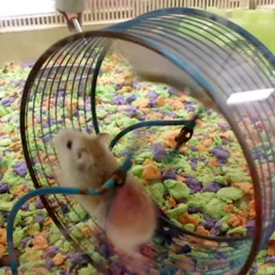 REDUB MORE FOOTAGE. Hamster works off excess pounds inside its wheel, exercises. (more footage at top)