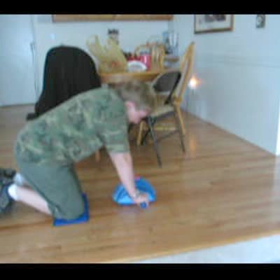 A young boy gets busted as he tries to get Halloween candy off of the kitchen counter with a duster. When a man asks him what he's doing, he says "cleaning," as he starts to dust the hardwood floor.
