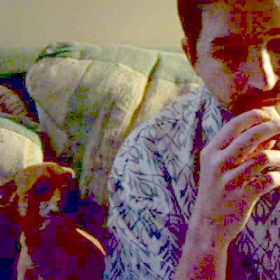 A small terrier dog sleeping on a couch hears a woman gasp and bolts up, excited. Gasp at Your Dog Challenge