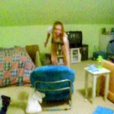 3 teen girls are jumping on the back of a desk chair in bedroom. 3rd girl hits the ceiling lamp & you hear a crash. Camera loses focus & goes black. Mom comes in & says "we never liked that lamp."