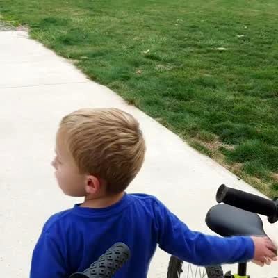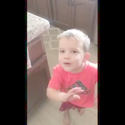 A tot boy pretends he's going to work, until he hears his mom mention bacon.