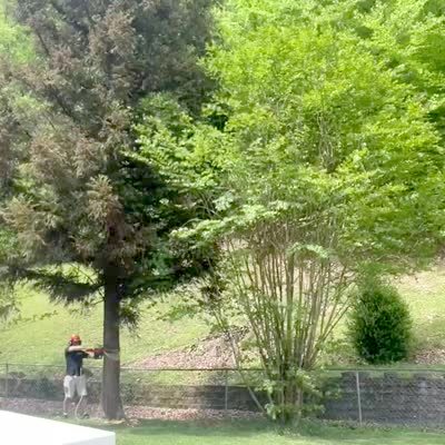 A woman screams while she hangs upside down from a zip-line and rides above the tops of the trees.