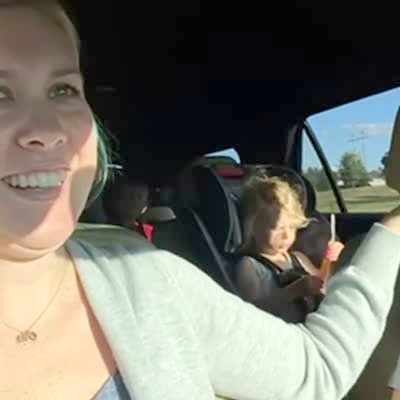 A woman asks a man if they can snuggle and a tot girl in the backseat of the car screams and says "you people no snuggle".
