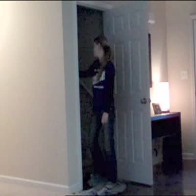 Mom hides in a small cabinet while playing Hide & Seek with girl. Woman's butt gets stuck in the cabinet & man has to pull her out. Woman is embarrassed. Bonehead. Short recovery.