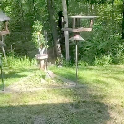 A young boy hides in a ghillie suit and scares a woman and another young boy that walk up to the house.