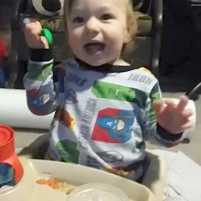 A baby boy hides a spoon behind himself at home, then he shrugs when a woman asks him where the spoon went. Mind-Blowing Magic