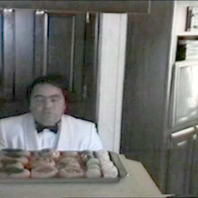 AA: Famous Herve Villachez look-alike does "da plane" routine about flavored donuts.
