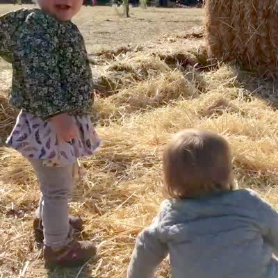 A tot girl digs a hole in the dirt in the ground and says, "I think this is where a chili dog lives." A young boy next to her says, "You mean a prairie dog?"