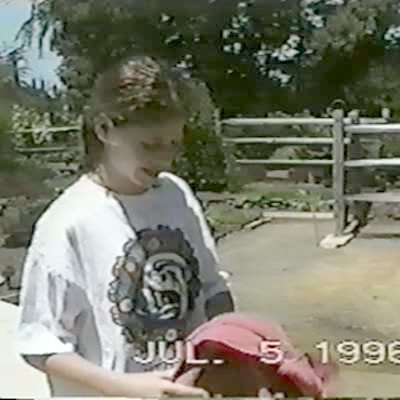 Man stands on a floor buffer in the house and spins around. He falls off. No tails.