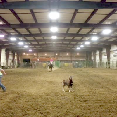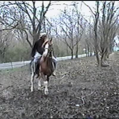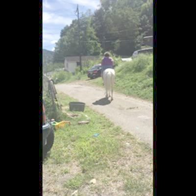A young girl asks Alfonso for more horse videos, while she rides a horse outside.