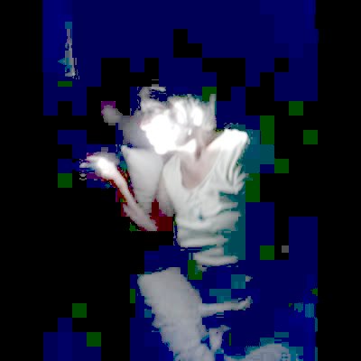 A woman pole dances on a lamp post in a hotel room, and then it breaks and she falls on the floor as the glass shatters.
