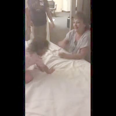 Young girl jumps from bed to bed and falls off, hits face on wall