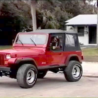 A woman tries to get her dog into her sweater to make him look like a dog with human hands when the dog runs away and drags her behind him.