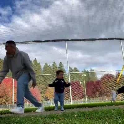 A man and woman play the "chase which parent" challenge, they run away and a tot boy picks up the phone and runs away at the park.