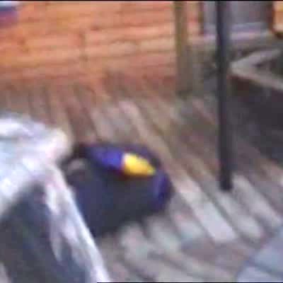 Toucan bird hops over to cameraman & starts attacking his feet, biting him with its beak.