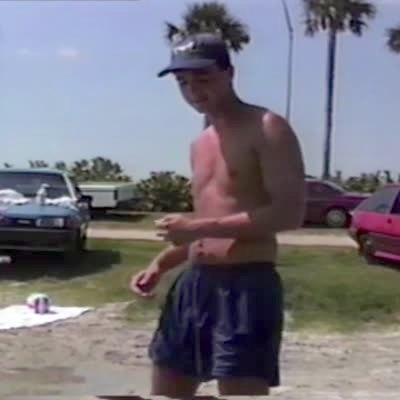 "Milk Jug Jokers" Two men smack each other on the back of the head with a plastic milk jug.