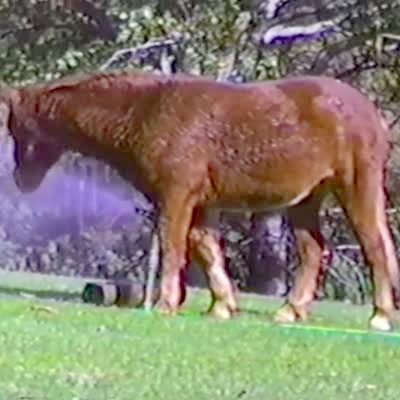 Horse Shower - Horse loves the sprinkler, then lies down & rolls over.