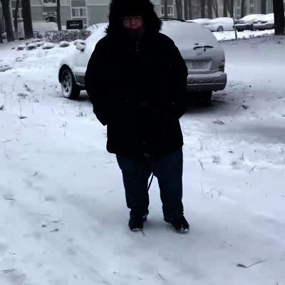 A young woman records her audition for "American Ninja Warrior" in a field of winter snow. She runs onto a frozen pond and then slips and falls.