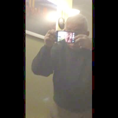 A senior man struggles to take a photo of himself, but only gets part of his face because he has no idea what he is doing..