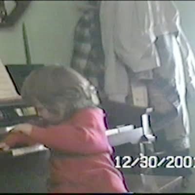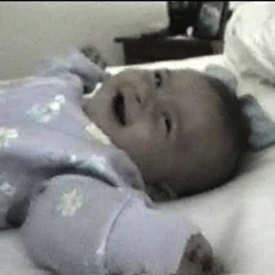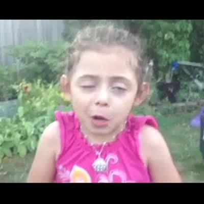 "Bush Baby" Tot girl does very good impression of George W. Bush by squinting her eyes.