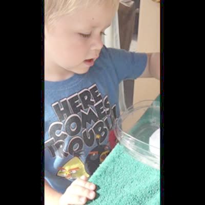 Bubble Mouth. Kid tries to blow bubbles through pipe, but it comes out his mouth. (he inhales)