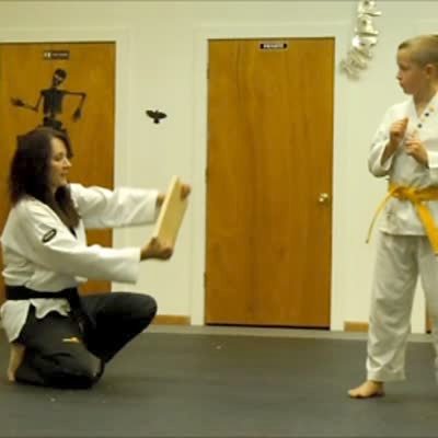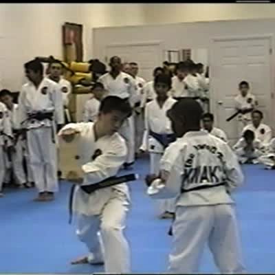 Tae Kwon Do instructor breaks boards in class and one hits a man in the head. Martial arts, karate.