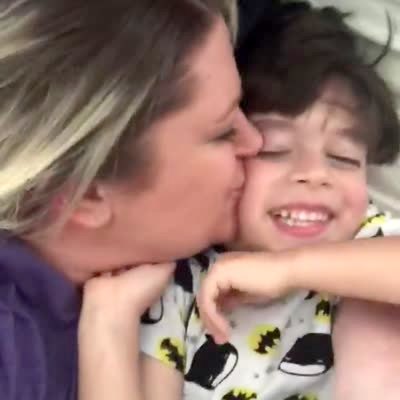 A tot boy tells his mother that she is beautiful in the bedroom. He then tells her that she's not beautiful without makeup on.