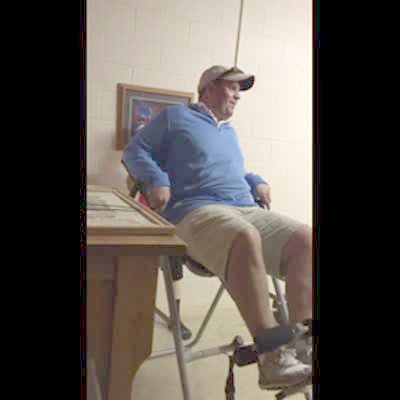 Two young boys teach a man how to use an inversion table. When the man leans back he falls off the table on his head.