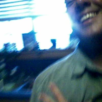Man gets his ear pierced by a friend in the kitchen. Man yells, then says "Pain is my friend."