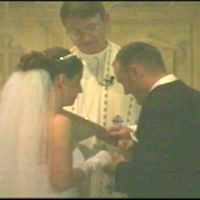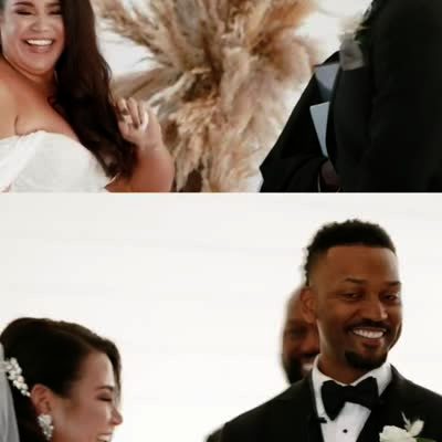As a couple is about to be married, a woman takes out her vows and blows dust off of them. The crowd erupts into laughter. A caption reads 'When you've been together for 15 years.' Produced video.