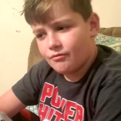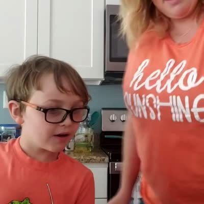 "Magic Trick Tot" A woman tells a tot boy to put a piece of paper in her fist in a kitchen. She shakes her hand and throws the paper over her shoulder, then laughs with the tot boy and shows him that it is gone. After a few rounds of this trick, the tot boy yells "oh my gosh."