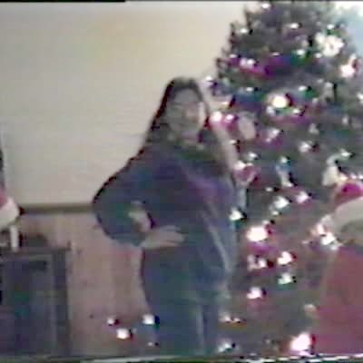 Tot girl is in front of the Christmas tree while mom sings "Jingle Bells." She stops singing to poop in her diaper. Mom asks if she's going right now & girl says "yes."