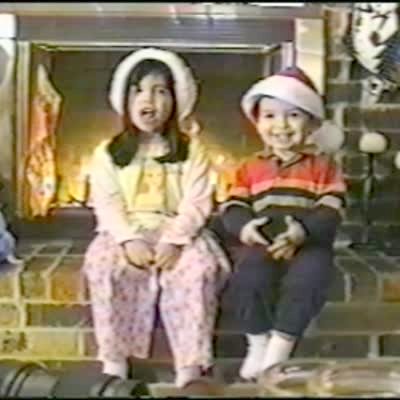 Tot boy and girl sing "Jingle Bells," at the end her brother says he farted. Sibling.