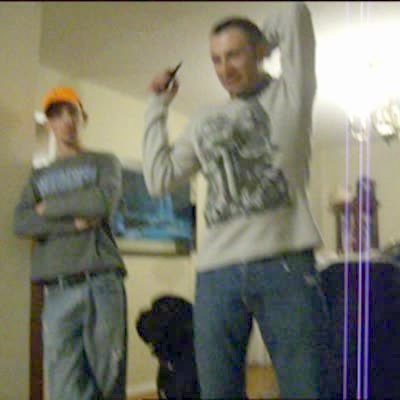 Man shocks himself with dog collar. Has a huge reaction and falls to floor.
