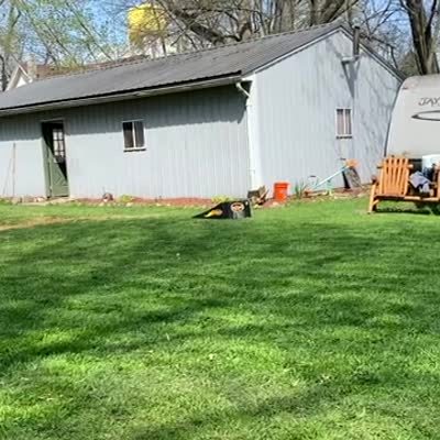 A rabbit runs past a man while he smokes a cigarette outside, and he screams loudly and jumps, then claims that a big-ass raccoon ran at him. His teen boy son comes out and asks if it was the rabbit, and the father says "no." Security footage.