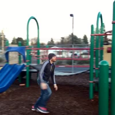 Two young boys and a young girl ask Alfonso for more failure videos, and one boy and girl purposely drop from a jungle gym.