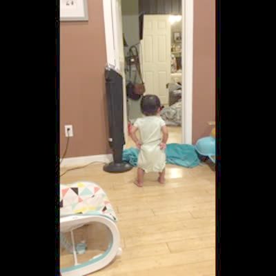 A man brings one baby boy into a room and goes to get his twin and the other crawls out while he is gone.