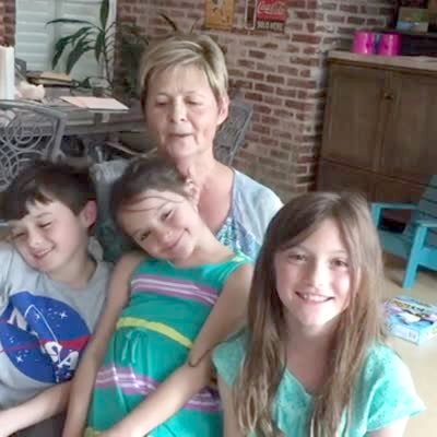 A woman and her three young kids sing happy birthday on a living room coffee table, but the table breaks.