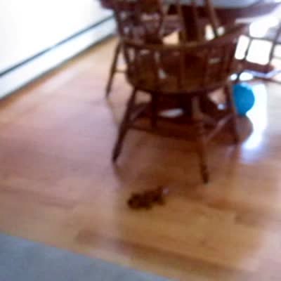 A woman in the kitchen claims she saw something move in the kitchen and her husband jumps onto a chair. After some time, the man cleans the kitchen and screams and runs away when he sees the mouse.