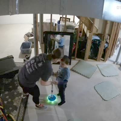 Two young boys stand in the living-room and holds rolls of toilet paper and Lysol spray. There is paint smeared all over the walls and splattered on the couch and the older brother says "We kinda got outta control with the paint. We lost our minds." and his mother says they won't get any more paint.