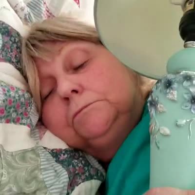 "Loopy Lamp Lady" A woman sleeps on a bed and snores when a woman wakes her and hands her a lamp as a phone and says "phone call."