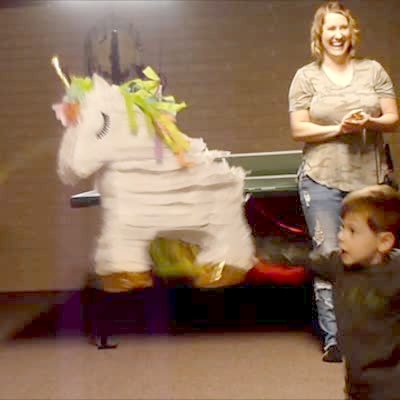 A young boy hits a piƱata mercilessly and while his family laughs.