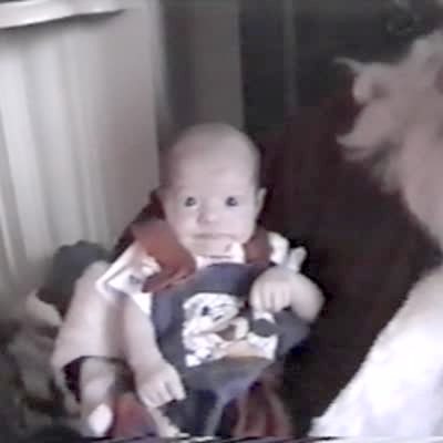 Doberman Pinscher dog follows laser pointer to teen boy's crotch and then bites boy in the groin. Short tails. Practical joke. Short heads & tails.