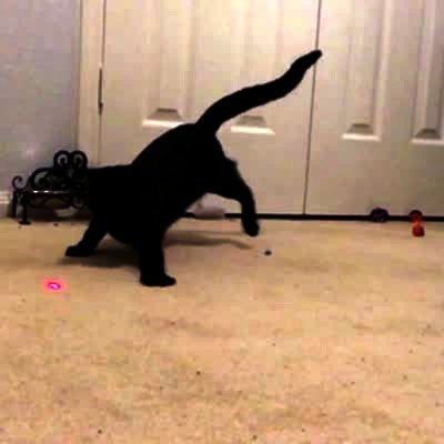 A cat chases after a laser dot as its paws flap around. In slow motion. AA: Cats In Slow-Mo