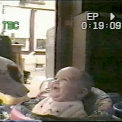 "The Happy Hiccupper" Twin babies boy and girl sit on the couch. One has the hiccups, the other laughs repeatedly.