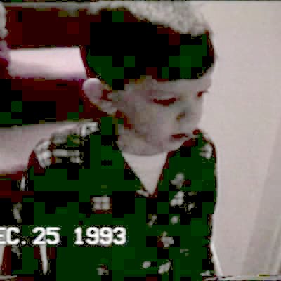 A man gets his daughter to slide a quarter down the middle of her face after he put pencil lead on the side of the quarter to leave a mark. The father gives the girl a mirror to look at herself and they laugh when the girl pretends she is going to hit him with the mirror. Practical joke.