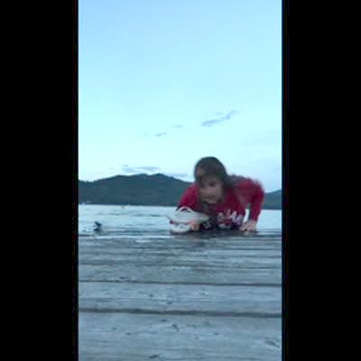 A teen girl falls in to a lake and then dives back in for her shoes. Short lead in.